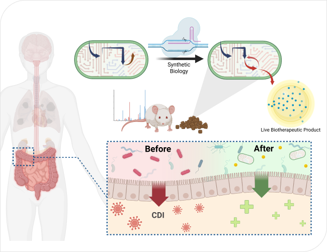 To address these unmet clinical needs, the SBL is developing a new microbial therapeutic platform based on safe and human-compatible strains. We are evaluating the potential of this platform to prevent CRC and suppress CDI through animal studies and immunological analyses.