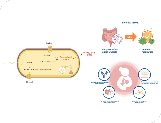 Human milk oligosaccharides (HMOs) are important bioactive components that support healthy gut microbiota, protect against harmful bacteria, and help regulate the immune system. Among them, fucosylated HMOs exhibit strong biological activity and are attracting attention as promising ingredients for functional foods and pharmaceutical products.